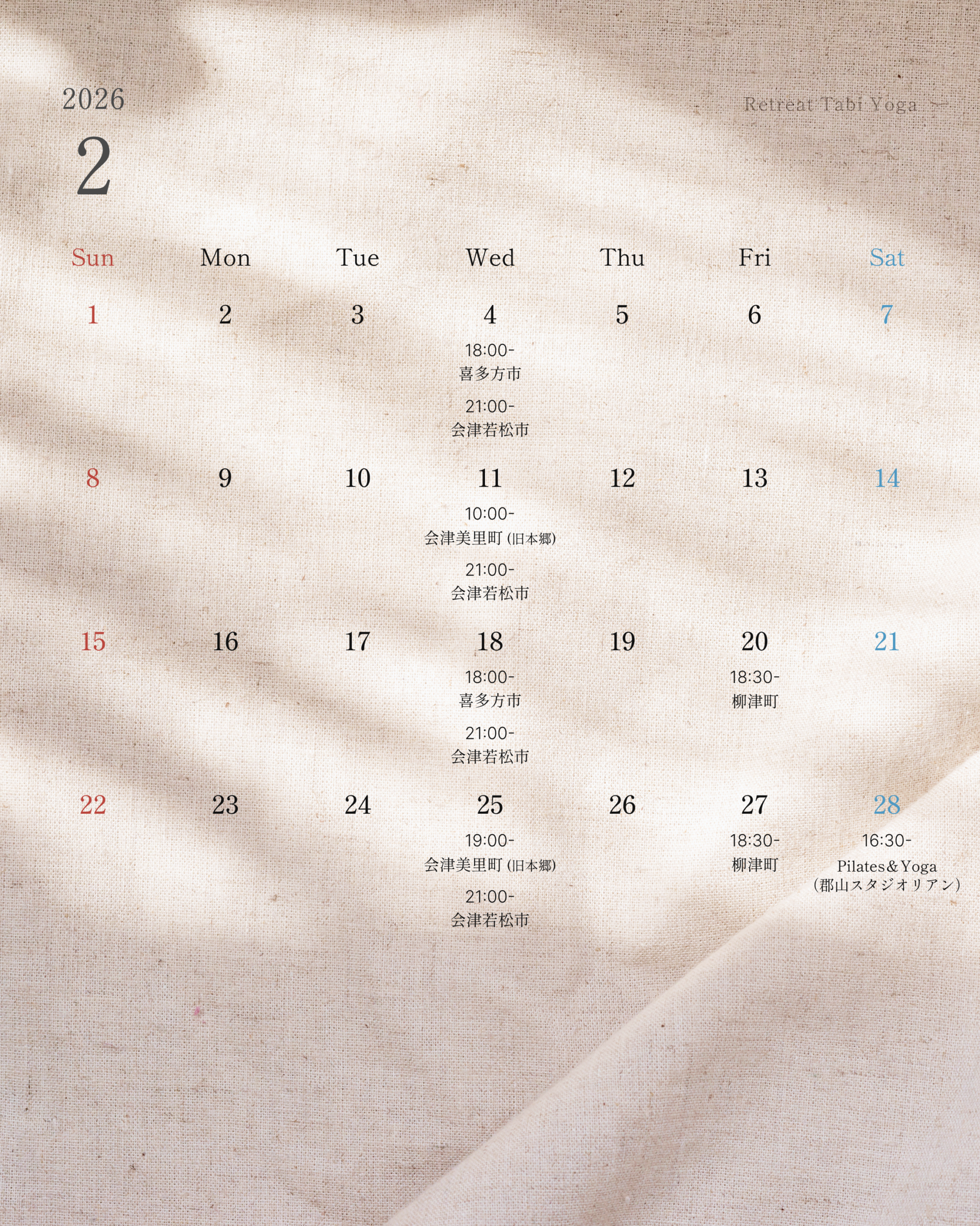 2026年2月のレッスン/イベント